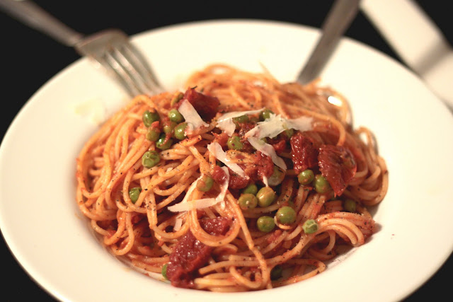 W międzyczasie gotujemy makaron al dente wg instrukcji podanej na opakowaniu.